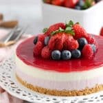 Keywords: no bake cheesecake, berry cheesecake, vanilla cheesecake, easy cheesecake recipe, mixed berry topping, graham cracker crust, summer dessert
