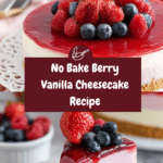This no bake berry vanilla cheesecake is a delicious and refreshing dessert that’s perfect for any occasion. It combines a creamy vanilla cheesecake with a sweet mixed berry topping, all set on a crunchy graham cracker crust. Best of all, it requires no oven, making it easy and quick to prepare.