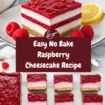 This no bake raspberry cheesecake is a refreshing and creamy dessert that’s perfect for warm days or when you want a fuss-free treat. Combining a buttery graham cracker crust with a smooth cream cheese filling and vibrant raspberry topping, it’s sure to impress your family and friends.