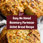 This No Knead Rosemary Parmesan Skillet Bread is a rustic, flavorful loaf perfect for any meal. With a simple preparation involving no kneading, fresh rosemary, and a cheesy parmesan topping baked in a cast iron skillet, it offers a crispy crust and soft, aromatic interior that’s sure to impress both beginners and seasoned bakers alike.