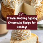 This Nutmeg Eggnog Cheesecake combines the creamy richness of classic cheesecake with the festive flavors of eggnog and warm nutmeg. Perfect for holiday gatherings, it features a buttery graham cracker crust and a smooth, spiced filling topped with a luscious eggnog whipped cream. Celebrate the season with this indulgent dessert that’s sure to impress.