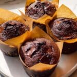 Store the muffins in an airtight container at room temperature for up to 2 days. For longer storage, refrigerate for up to 5 days. Reheat gently in the microwave for 15-20 seconds before serving. The ganache is best enjoyed fresh but will keep refrigerated along with the muffins.