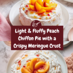 Keywords: Peach Chiffon Pie, meringue crust, whipped cream, fresh peaches dessert, easy summer pie