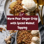 This Pear Ginger Crisp is a comforting dessert that combines tender, spiced pears with a crunchy oat and walnut topping. Warm spices and a hint of fresh ginger add depth to this classic crisp, making it perfect for cozy evenings or special occasions.
