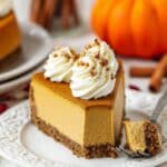 This Pumpkin Cheesecake combines a spiced pumpkin filling with a buttery graham cracker crust, baked in a water bath for a creamy, crack-free texture. Topped with a smooth cinnamon-cream cheese whipped cream and chopped pecans, it’s a festive and decadent dessert perfect for autumn celebrations.