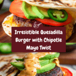 The Quesadilla Burger is a flavorful fusion of a classic cheeseburger and a cheesy quesadilla. Packed with seasoned beef, melted Mexican cheese, and zesty chipotle mayo, it offers a delicious twist that’s sure to impress your family and friends.