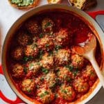 Store leftover meatballs and sauce in an airtight container in the refrigerator for up to 3 days. Reheat gently on the stove or in the microwave until warmed through. Avoid overcooking when reheating to keep the meatballs tender.