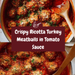 These Ricotta Meatballs with The Crispy Topping are a delightful fusion of tender, juicy turkey meatballs blended with creamy ricotta and Parmesan cheeses, baked to perfection and finished with a crunchy, golden panko topping. Served in a rich, savory tomato sauce, they make a comforting and satisfying meal perfect for weeknight dinners or special occasions.