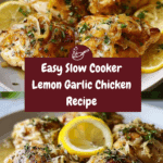 This slow cooker lemon garlic chicken is a simple, flavorful meal perfect for busy days. Tender chicken thighs are infused with bright lemon and aromatic garlic, making for a comforting and delicious dinner.