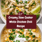Slow Cooker White Chicken Chili is a comforting and flavorful dish perfect for chilly days or easy weeknight dinners. This hearty chili combines tender chicken, beans, corn, and green chilies simmered to perfection in a slow cooker. It’s simple to make and customizable to suit your taste.
