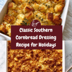 Southern-Style Cornbread Dressing is a comforting holiday classic that features savory herb-seasoned stuffing mixed with moist, homemade buttermilk cornbread. This rich and flavorful dish pairs perfectly with roasted turkey or chicken and brings a touch of Southern charm to your table.