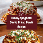 These Spaghetti Garlic Bread Bowls combine hearty meat sauce-coated spaghetti with crispy, flavorful garlic bread bowls, topped with melted mozzarella and Parmesan cheeses. A delicious and comforting twist on classic spaghetti that’s perfect for a satisfying meal.