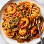 Keywords: spicy shrimp puttanesca, shrimp pasta, Italian seafood pasta, quick dinner, spicy puttanesca sauce