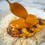 Store leftover chicken and sauce in an airtight container in the refrigerator for up to 3 days. Reheat gently on the stovetop or in the microwave to avoid drying out the chicken.