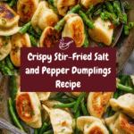 This Stir-Fried Salt and Pepper Dumplings recipe combines crispy potstickers with vibrant green beans, fragrant scallions, and a bold salt and pepper seasoning blend. A quick and flavorful stir-fry that pairs the savory taste of dumplings with aromatic Chinese five-spice and fresh chiles for a satisfying meal perfect for any weeknight.