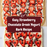 This Strawberry-Chocolate Greek Yogurt Bark is a delightful and healthy frozen treat combining creamy whole-milk Greek yogurt, naturally sweetened with maple syrup or honey, fresh sliced strawberries, and mini chocolate chips. Perfect as a refreshing snack or dessert, it’s easy to prepare and great for warm days.