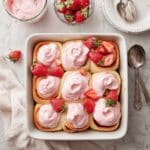 Delight in these soft, homemade strawberry cinnamon rolls featuring a luscious strawberry filling and a creamy strawberry-cream cheese glaze. Perfectly sweet and tangy, these rolls make for a comforting breakfast or dessert treat with a unique fruity twist.