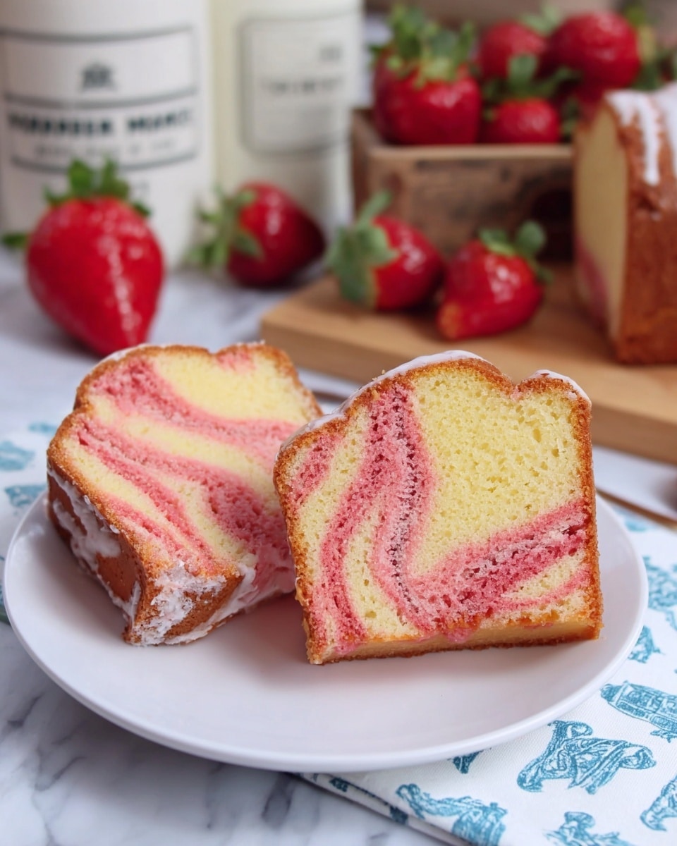 This Strawberry Cream Cheese Pound Cake is a moist, rich cake featuring a luscious strawberry swirl and a tangy cream cheese glaze. The cake combines velvety cream cheese and butter with fresh strawberry puree and extracts to create a beautifully marbled look and indulgent flavor. Finished with a creamy strawberry-infused glaze, this pound cake is perfect for celebrations or a special dessert treat.