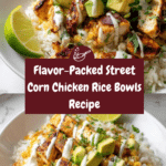 This Street Corn Chicken Rice Bowl is a vibrant and flavorful dish combining tender, marinated chicken with charred street-style corn, creamy sauce, and fluffy rice. It’s a perfect blend of smoky, tangy, and mildly spicy flavors, garnished with fresh avocado and lime for a delightful, colorful meal inspired by Mexican street food.