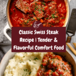 Swiss steak is a comforting and hearty dish featuring tenderized beef simmered in a flavorful tomato and vegetable sauce. Perfect for a family dinner, it pairs wonderfully with mashed potatoes or rice. This classic recipe is simple to prepare and delivers rich, savory flavors in every bite.
