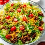 Keywords: taco salad, ground beef salad, Mexican salad, quick taco recipe, healthy taco bowl, avocado salad, lettuce salad with beef, easy weeknight dinner