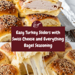 Keywords: turkey sliders, Hawaiian rolls, baked sliders, party snacks, appetizer, Swiss cheese, everything bagel seasoning