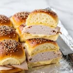 These turkey sliders are an easy and delicious crowd-pleaser, perfect for gatherings or a quick meal. Soft Hawaiian rolls are layered with savory deli turkey and Swiss cheese, then brushed with a flavorful butter mixture and baked to melty perfection.