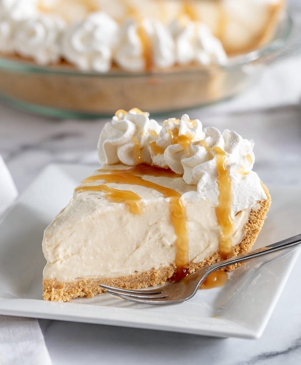 This Vanilla Caramel Pie is a luscious dessert featuring a smooth caramel cream filling topped with fluffy whipped cream. The combination of sweet caramel and rich vanilla whipped cream makes it an irresistible treat for any occasion.