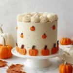 This Vegan Pumpkin Spice Cake is a moist, flavorful dessert perfect for celebrating the cozy flavors of autumn. Featuring warm pumpkin and a blend of classic spices, this cake is topped with a creamy dairy-free buttercream frosting decorated with charming pumpkin motifs. Completely plant-based and rich in seasonal spices, it’s ideal for those following a vegan diet or anyone looking for a delicious, dairy-free treat.