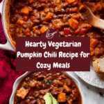 This hearty and flavorful Vegetarian Pumpkin Chili combines the sweetness of pumpkin and sweet potato with a blend of classic chili spices and a variety of beans. It’s a comforting, nutritious, and easy-to-make one-pot meal perfect for cool weather and vegetarian diets.