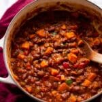 Keywords: vegetarian chili, pumpkin chili, pumpkin recipes, healthy chili, meatless chili, sweet potato chili, fall recipes, autumn meals, easy chili