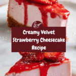 Velvet Strawberry Cheesecake is a luscious and creamy dessert featuring a buttery graham cracker crust, a smooth and dense cream cheese filling, and a vibrant homemade strawberry topping. Perfectly baked in a water bath for a silky texture, this cheesecake is finished with a fresh strawberry glaze that adds a bright and sweet contrast. Ideal for special occasions or a decadent treat.