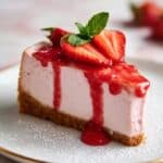 Keywords: Strawberry cheesecake, creamy cheesecake, graham cracker crust, baked cheesecake, strawberry topping, dessert, classic cheesecake
