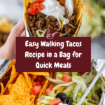 Walking Tacos are a fun and easy way to enjoy all the flavors of a taco without using a plate. Perfect for parties, picnics, or a quick dinner, this dish combines seasoned ground beef with crunchy chips and classic toppings right inside the snack bag.
