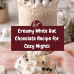 This White Hot Chocolate recipe is a luscious and creamy twist on the classic hot chocolate, made with rich whole milk, heavy cream, and melted white chocolate. Perfect for cozying up on a chilly day, it’s topped with whipped cream or marshmallows for an indulgent treat.