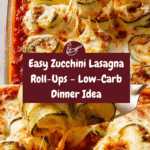 This Zucchini Lasagna Roll-Ups recipe offers a low-carb twist on traditional lasagna by replacing noodles with thinly sliced zucchini. Filled with a creamy ricotta and Parmesan mixture, layered with marinara and mozzarella, then baked to bubbly perfection, these roll-ups make a light yet satisfying meal perfect for a healthy dinner option.